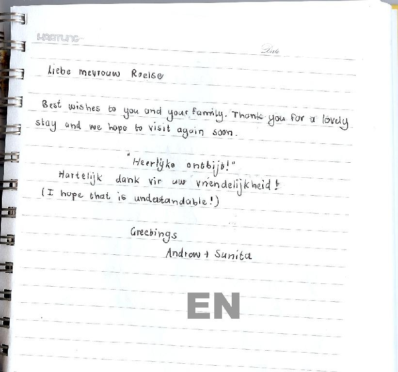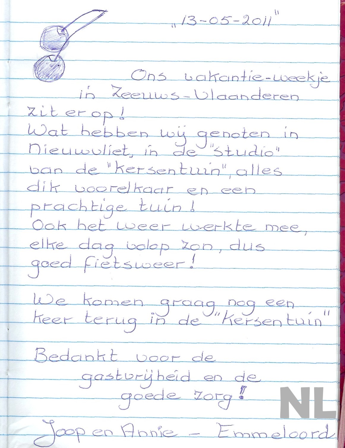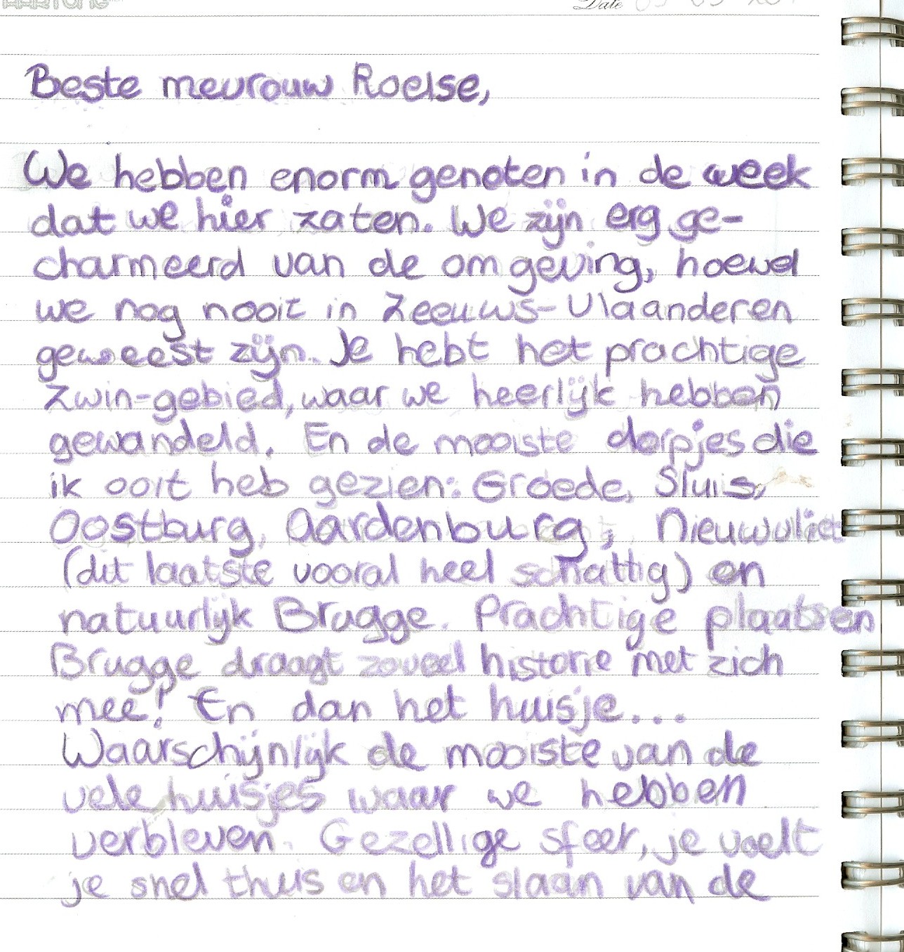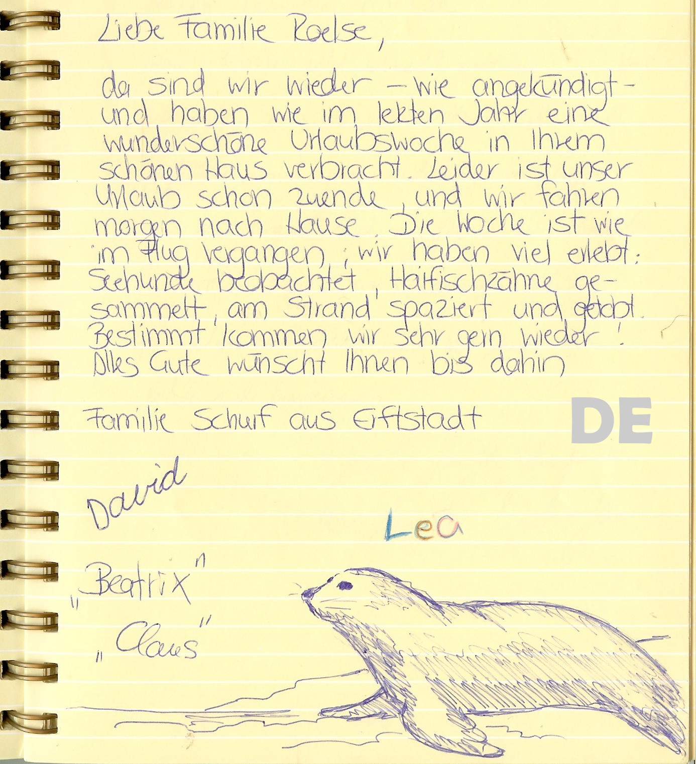 vous trouverez dans chaque accommodation un livre d'or rempli par nos hôtes, Nous en avons digitalisé une partie pour que vous donner une impression de la façon dont nos hôtes passent leur vacances chez nous. La plupart des textes est en Néerlandais ou Allemand mais vous trouverez quelques pages en Français.